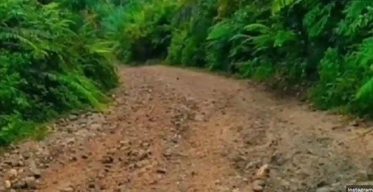 “Aih tolong lah woi, siapa lah bupati, camat, presiden ini? Perbaiki jalan kami ini,” teriak pria tersebut dengan nada getir.