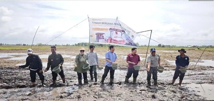Komitmen Kementan melalui Badan Penyuluh dan Pengembangan SDM Pertanian (BPPSDMP) melakukan tanam bersama percepatan luas tambah tanam (LTT) lokasi Optimasi Lahan (Oplah) di Desa Sri Menanti Kecamatan Tanjung Lago Kabupaten Banyuasin, Sumatera Selatan (19/2/2026).