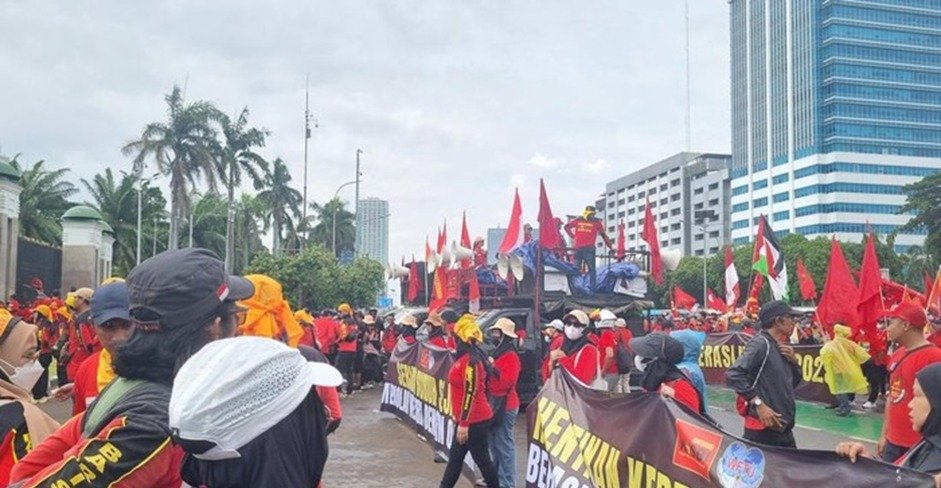 Massa Buruh Demo di Depan Gedung DPR RI, Suarakan Kenaikan Upah.
