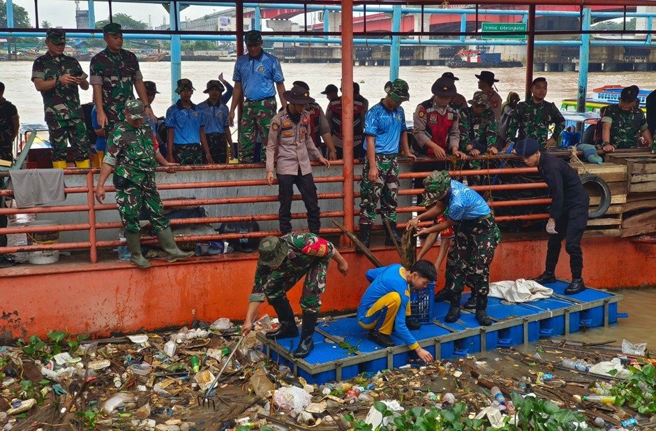 Pemkot Palembang dan Prajurit TNI AU Bersihkan Sampah di Kawasan Sungai Musi . TNI AU melalui Lanud Sri Mulyono Herlambang (SMH) bersama Pemerintah Kota Palembang melakukan aksi bersih-bersih sampah di kawasan Sungai Musi (6/2).