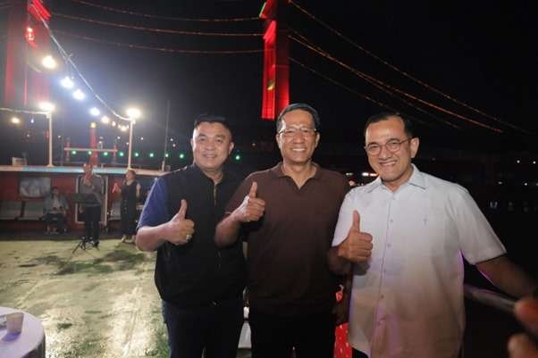 Pemkot Palembang Dipuji Menteri Hukum RI, Nikmati Keindahan Ampera Dengan Musi Cruise.Sekretaris Daerah Kota Palembang Aprizal Hasyim, menjamu Menteri Hukum Republik Indonesia, Dr. Supratman Andi Agtas, SH, MH, dengan sebuah makan malam istimewa di Kapal Musi Cruise, Minggu 27 Juli.