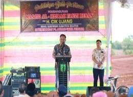 Lubuk Linggau — Wakil Gubernur (Wagub) Sumatera Selatan (Sumsel) H. Cik Ujang bersama Wali Kota Lubuk Linggau H. Rachmat Hidayat melakukan peletakan batu pertama secara simbolis pembangunan Masjid Al-Hijrah Fauzi Resan di Perumahan Beverly Hill, Kota Lubuk Linggau, Sabtu (24/5/2024).